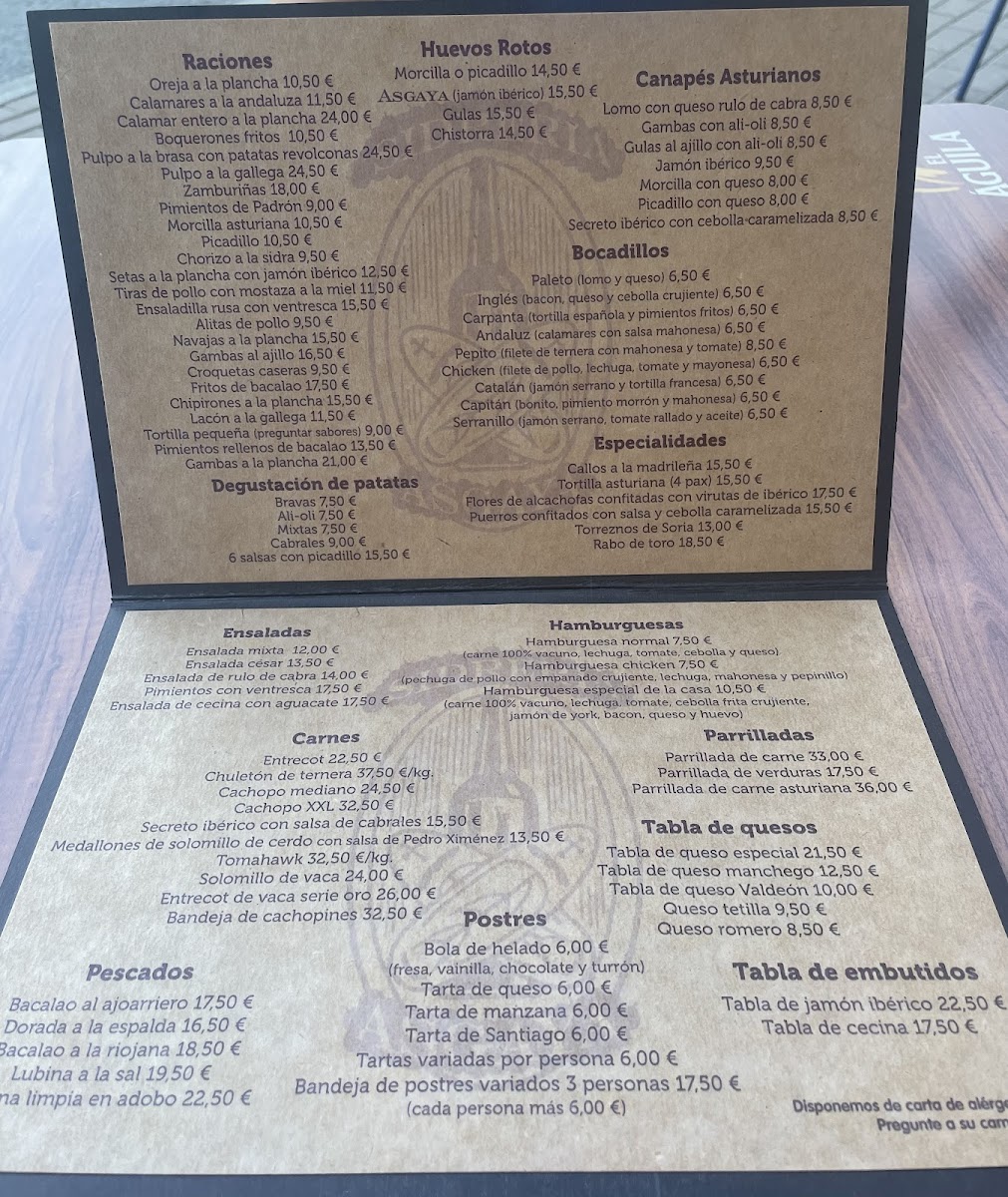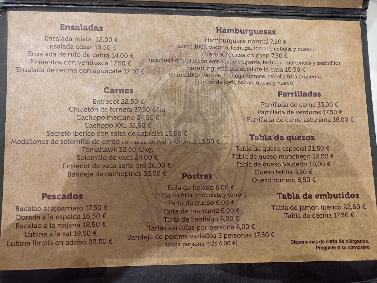 The menu features a variety of tempting dishes that highlight the rich culinary traditions of Asturias. From savory tapas to hearty main courses, every bite showcases freshness and quality. The standout option is, of course, the cider—carefully sourced and expertly paired with meals to elevate your dining experience.